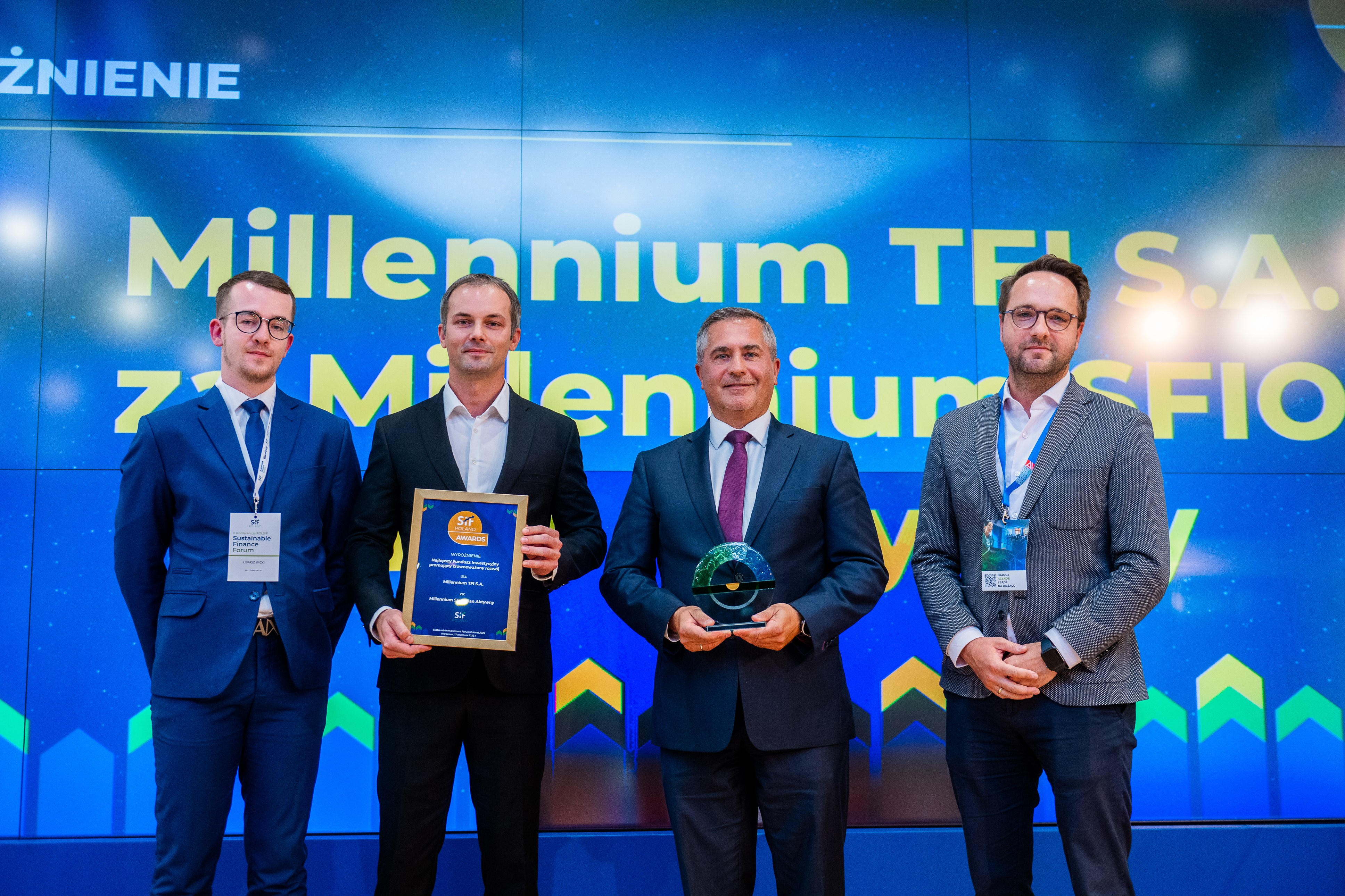 Dziękuję naszym Klientom za zaufanie, zaś całemu zespołowi Millennium TFI za konsekwentną realizację strategii inwestowania w duchu zrównoważonego rozwoju.” - powiedział Krzysztof Kamiński, Członek Zarządu Towarzystwa, odbierając nagrodę wraz z Zarządzającym funduszem - Arturem Honkiem, oraz Ekspertem z Departamentu Zarządzania Ryzykiem - Łukaszem Wickim.- "Wyniki osiągane przez Millennium SFIO Plan Aktywny oraz przyznana nagroda świadczą o tym, że skuteczna selekcja i alokacja funduszy oraz odpowiedzialne inwestowanie dobrze się uzupełniają. Subfundusz Plan Aktywny inwestuje ponad połowę aktywów w fundusze promujące ESG, które pozwalają osiągać zadowalające stopy zwrotu przy jednoczesnym realizowaniu celów zrównoważonego rozwoju" - powiedział Artur Honek.